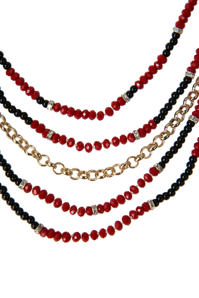 AllMerry Fashion Necklace สร้อยคอลูกปัดสีแดง+กลมดำนิล+โซ่ทองไล่ระดับ5เส้น