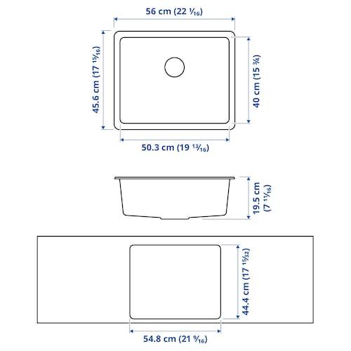 KILSVIKEN อ่างล้างจานแบบฝังใต้เคาน์เตอร์หลุมเดียว สีดำ